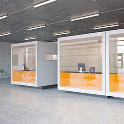 Tysta kapslar: Kombinerar akustisk teknik och minimalistisk estetik för att skapa privata utrymmen för fokuserat arbete eller uppslukande avkoppling.